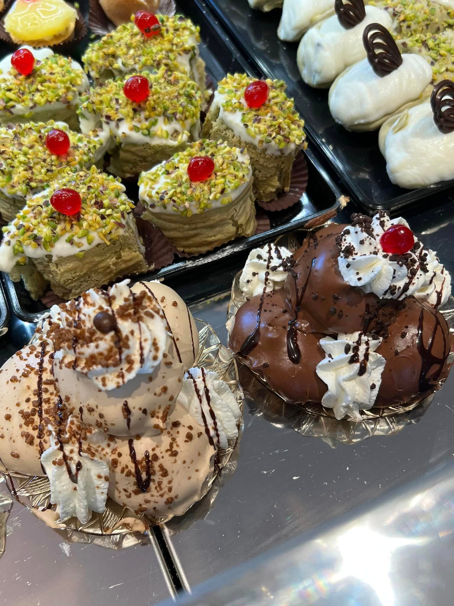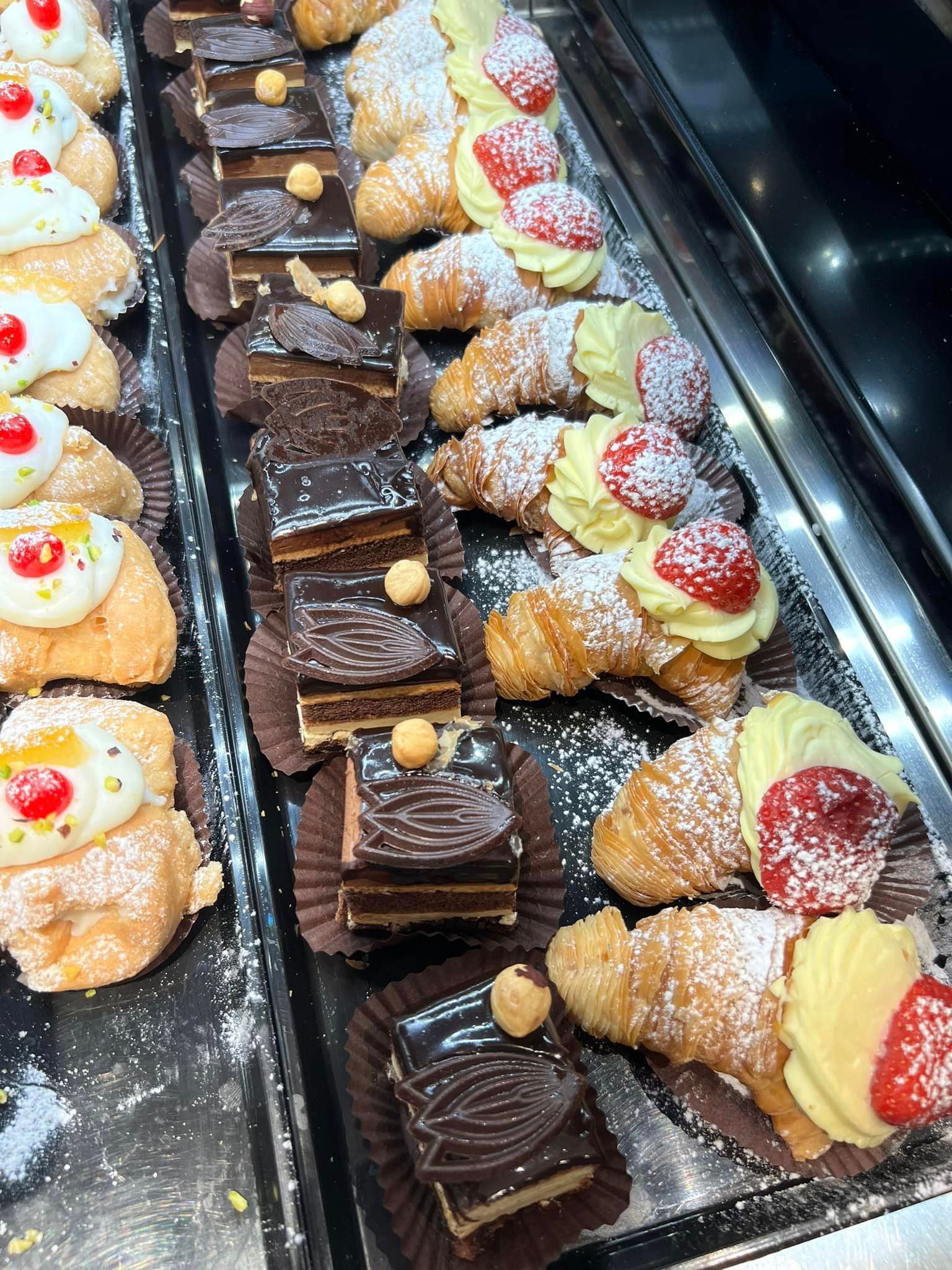 Tra le prelibatezze che potrete assaporare troviamo la cheesecake, la mousse al pistacchio e all'arancia, la savoia, la sacher, il tiramisù, il pandarancio, le crostate, le cassate, le sfince, i cannoli, i dessert di mandorle e l'excelsior. Inoltre, ogni stagione viene celebrata con una grande varietà di specialità, tra cui le chiacchiere, il gelo di melone, la frutta martorana, i panettoni e le colombe a lievitazione naturale.